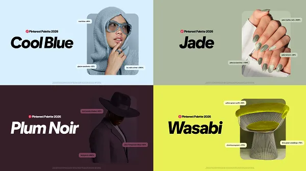 Overall, Pinterest’s 2026 Palette signals a shift toward more expressive, emotionally “loud” color choices, supported by rising search interest in icy blues, deep plums, chartreuse greens, and bold orange-red combinations. For marketers, the clearest opportunity is to test these tones in creative variations, especially where discovery and aesthetic-led engagement matter—while keeping brand identity intact through controlled, campaign-level use.