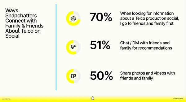 In addition, the report indicates that Snapchat users often rely on both creators and close personal networks when making telecom-related decisions. This combination of public content and private influence gives the platform a unique role in the purchase journey.